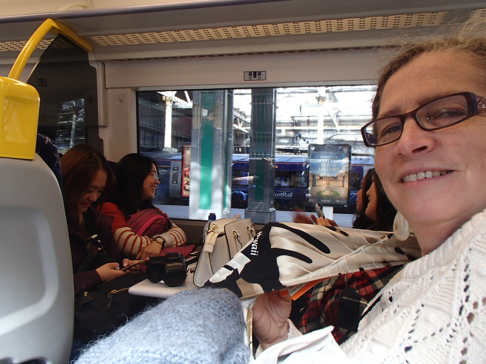 The chuckle ended when my spouse disappeared out the door and into the crowd. He came back to chide me for dawdling. He'd neglected to let me know that we had about 3 minutes to catch the train. Then he dashed through the turnstile with all of the tickets, leaving me behind again. He came back wondering about the hold up, gave me a ticket, and took off again. When it didn't work, one of the station masters looked at it. It was a return ticket FROM Stirling, so of course I couldn't use it. He came back AGAIN, and this time gave me the correct slip of paper. whew! We stepped onto the train as the door closed behind us. Made it!