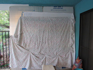 I then hung the top to dry. I am SO glad I covered it with this sheet. I left it out overnight, and a gust of wind caught it and sent it crashing to the ground. The quilt itself stayed clean. whew!
